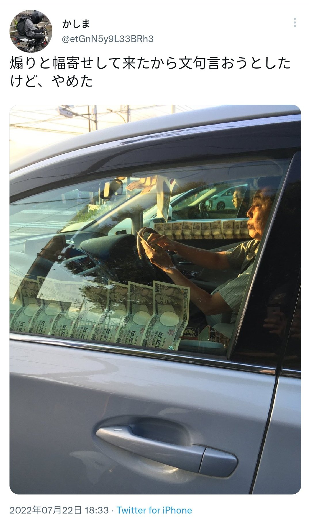 滝沢ガレソ 八王子付近にて 万札 で武装しこれ見よがしに幅寄せしてくる謎ドライバー出現 目撃証言も複数集まる T Co 40uc6agg7x Twitter